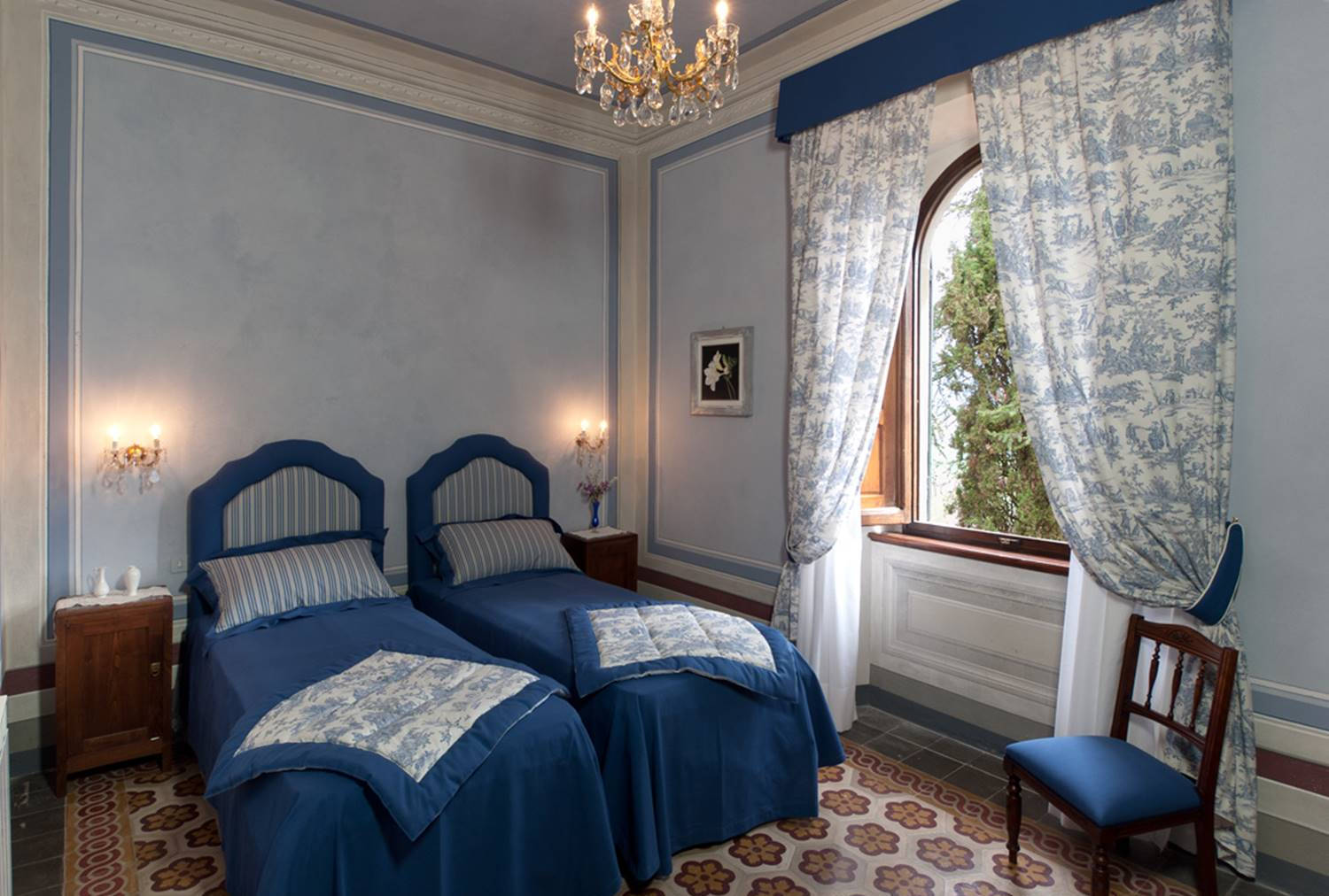 Il blu è il colore del cielo e del mare di cui forse avevano nostalgia i signori Mondello e che si sono portati in questa stanza.